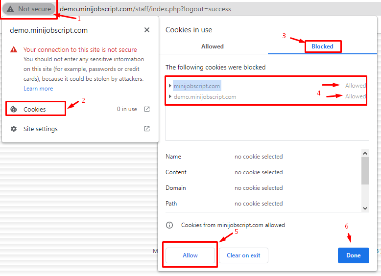 If you are unable to login admin panel? your browser blocked the cookies which prevent to login